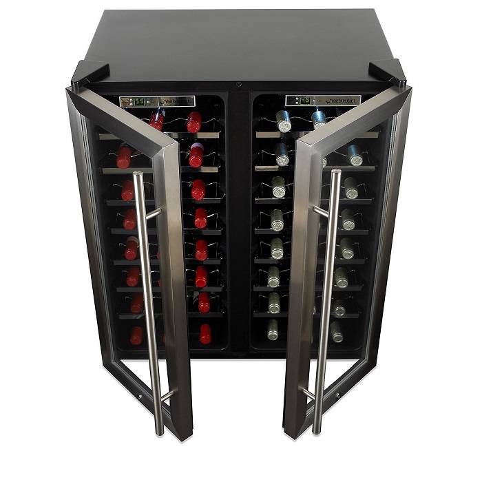 Wine Enthusiast Silent 48 Bottle Double Door Dual Zone Wine Refrigerator (Stainless Steel Trim Door)