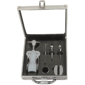 The 6-Piece Wine Tool Set Contains Everything You Need To Elegantly Serve And Enjoy A Bottle Of Wine. Stored In A Stylish Aluminum Case With See Through Display Window, This Set Makes A Great Gift For Any Occasion.